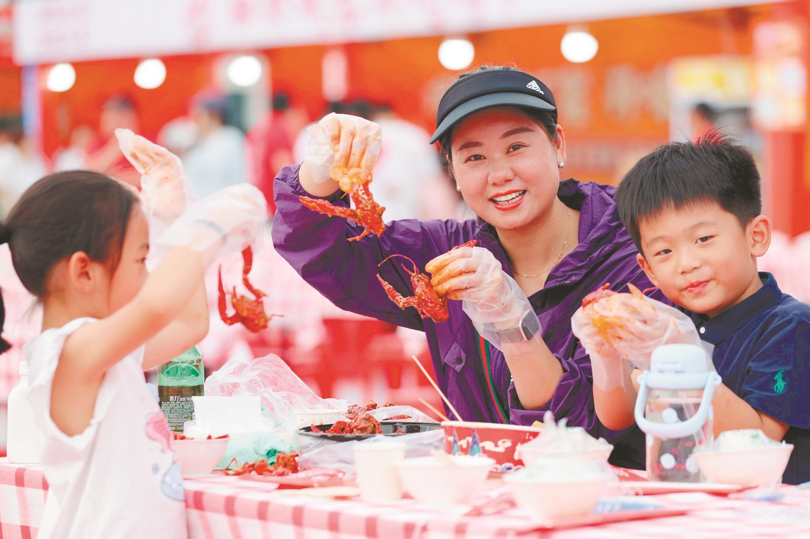 这些年蚌埠持续举办龙虾节、“虾王”争霸赛等勾当,图为市平易近正在品尝小龙虾。用一张张飘喷鼻的请帖,更是毗连蚌埠取外埠旅客的味觉桥梁。合肥市龙虾协会已持续参取举办了24届合肥龙虾节,一南一北两座城,品牌也走出蚌埠。